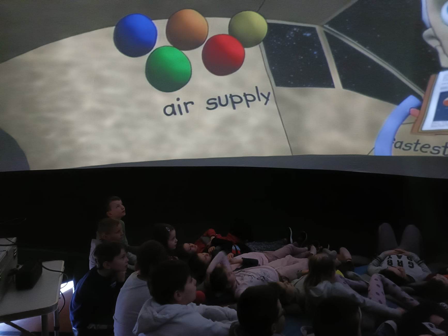Dnia 29 marca 2023 r. w naszej szkole uczniowie z edukacji wczesnoszkolnej mieli możliwość obejrzeć seans w planetarium mobilnym. W tej przenośnej, nadmuchiwanej kopule, która wyposażona jest w projektor, system dźwiękowy i ekran sferyczny uczniowie mogli obejrzeć wyświetlany w wysokiej jakości film oraz pokaz astronomiczny. Uczniowie zauważyli, że taki seans w planetarium znacząco różni się od zwykłej wizyty w kinie. To było dla nich interaktywne doświadczenie podróży w czasie i przestrzeni. W planetarium mieli okazję zapoznać się z tajemnicami Wszechświata i jego pięknem.