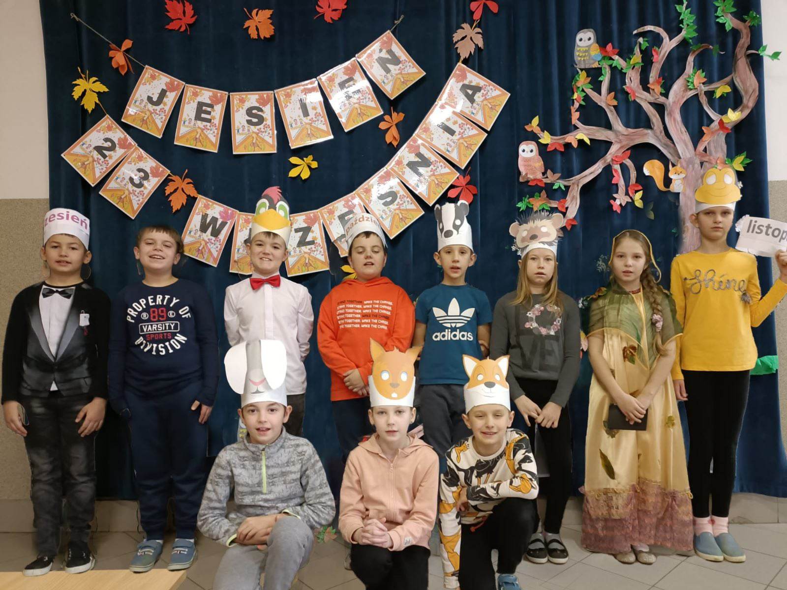 7 grudnia 2022 r. w naszej szkole uczniowie klas III zaprezentowali przedstawienie pt. „Pożegnanie jesieni – czyli co słychać u naszych leśnych przyjaciół. Uroczystość miała na celu przedstawienie piękna tej pory roku. Przybyli na występ młodsi uczniowie zostali zapoznani z jej cechami charakterystycznymi. Przypomnieli sobie, w jaki sposób zwierzęta przygotowują się do nadejścia zimy, jakie zapasy gromadzą, aby przetrwać tak trudny dla nich okres. Cały występ został uświetniony piosenką „Tańcząca złota jesień”.